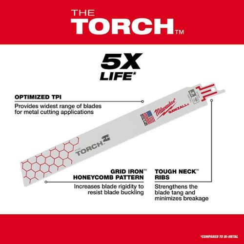 Milwaukee® SAWZALL® Reciprocating Saw Blade Set, Demolition Straight Tapered Back, 12 Piece, Specifications: 1 in W, For Use With: Reciprocating Saw, Bi-Metal, Uncoated, White, 1/2 in Dimensions